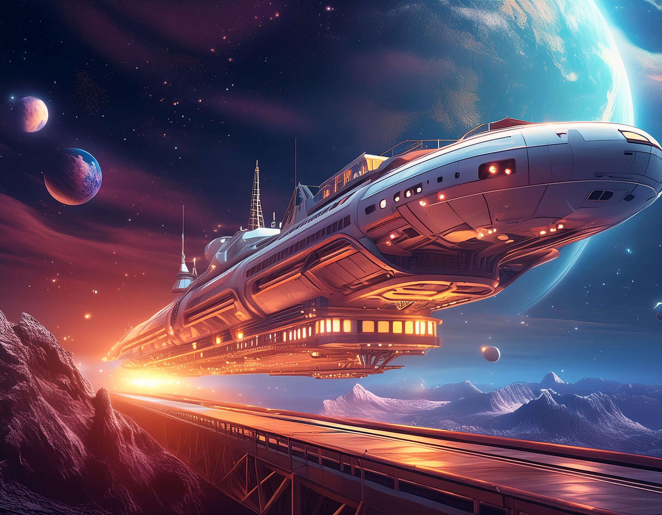 Nos vaisseaux, véritables œuvres d'art, sont équipés de technologies de pointe tout en conservant un charme intemporel. Chaque cabine est une bulle de confort et de style, offrant des vues panoramiques sur l'univers et un service personnalisé. Savourez des repas gastronomiques sous un ciel étoilé, préparez des explorations immersives avec nos guides experts, et détendez-vous dans nos spas gravitationnels.